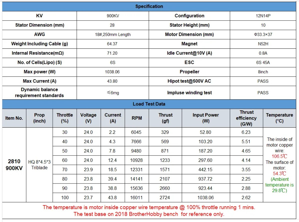 BrotherHobby Avenger 2810 900KV - мотор для настоящих ценителей длинных, плавных и стабильных полетов. Он создан для кинематографических дронов и тяжелых платформ, где требуется максимальная тяга и эффективность на низких оборотах. Благодаря большому статору 2810 и оптимальному KV в 900, этот мотор обеспечивает уверенную тягу с минимальным энергопотреблением, что особенно важно для длительных миссий.